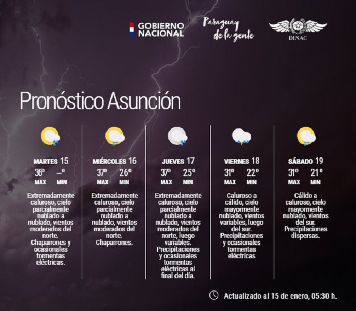 Según la meteoróloga de turno, violeta González, el ambiente caluroso e inestable se mantendrá para este martes y la sensación de incomodidad producida por el alto contenido de humedad en la atmósfera, aumentará.