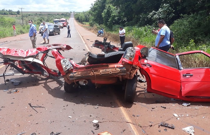 GRABE ACCIDENTE CON DERIVACIÓN FATLA EN KUMANDACAI – CANINDEYÚEl accidente ocurrio aproximadamente a las 11:30 hs., sobre la Súper Caretera Itaipú a la altura del Km. 155, de la Colonia Agricola Paraguaya, donde un vehiculo de la marca Volwagen, modelo gol, color rojo, con chapa Nº AVA 5631de Mundo Novo MS-Basil, guiado por BRUNO ALVES FONSECA, mayor de edad, queda totalmente destruido tras envestir por un tracto camión de la marca Scania, color blanco, chapa Nº CBG 759 Py., que estaba siendo guiado por el Sr. CARLOS RAMON CHAVES, 45 años, acompañado de su hijo menor, quienes sufrieron lesiones. El conductor del automóvil el Joven Bruno Fonseca perdió la vida instantáneamente, ambos rodados quedaron con daños materiales.La Comitiva fiscal se dirige al lugar para el procedimiento de rigor.
