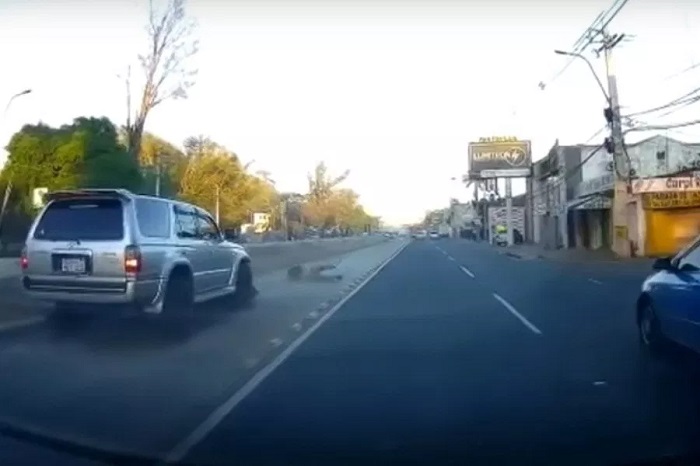En la mañana de este lunes, un motociclista que cruzaba, sin mirar, aparentemente, fue impactado por una camioneta que circulaba por la vía del Metrobús. El hecho quedó registrado por otro automovilista que circulaba en la zona.