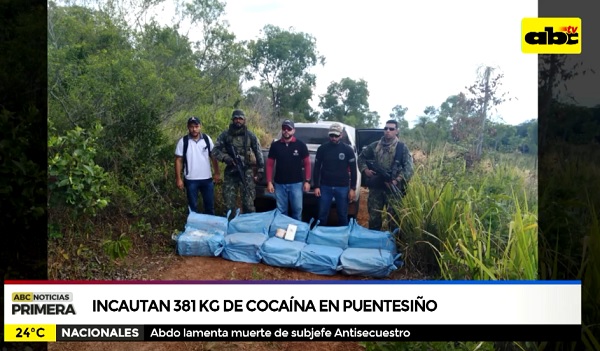 Se incautaron 349 paquetes de cocaína, que totaliza unos 381 kilogramos distribuidos en 10 bolsas plásticas.
