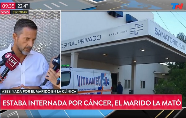 El asesinato se produjo el lunes por la tarde en el Sanatorio San Carlos de Escobar de Maquinista Savio, donde la mujer estaba internada después de tener una recaída por el cáncer.