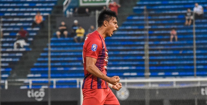El jugador realizó un peculiar gesto a la hinchada de Cerro durante la celebración del primer tanto ante las Águilas, este miércoles.