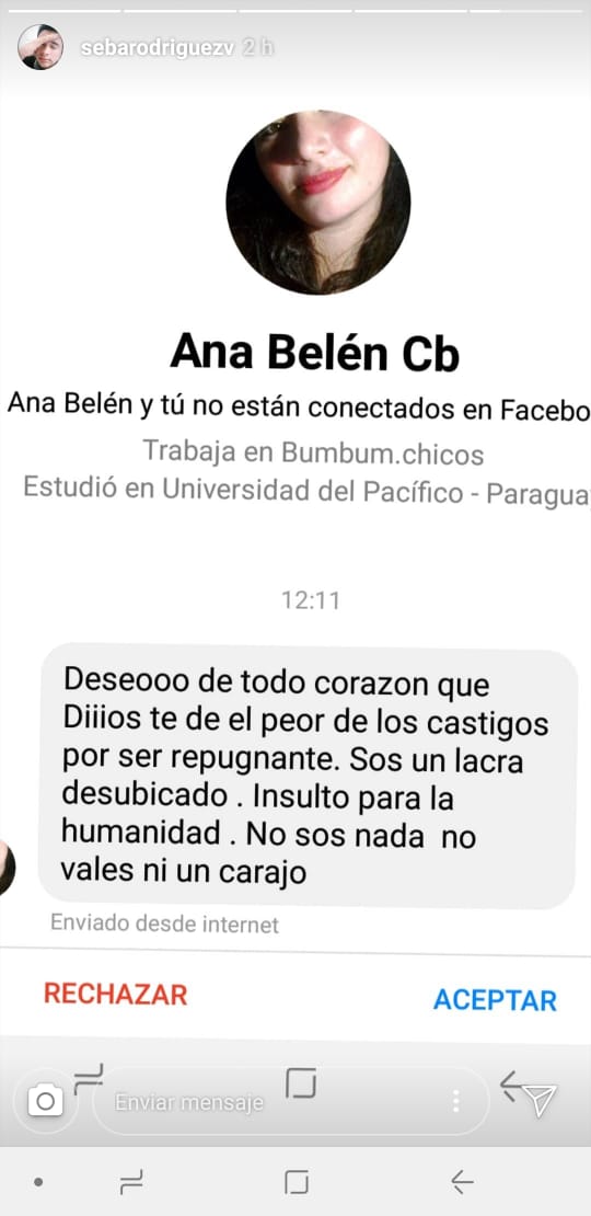 Además, publicó algunos perfiles que le tiraron diferentes amenazas. “Te voy a romper la cara”, redactó uno de los usuarios, entre otras cosas.