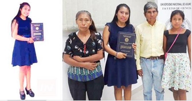 La joven, de 27 años, y oriunda de Puerto Casado, recibió su título de licenciada en Trabajo Social, de la Universidad Nacional de Asunción (UNA).