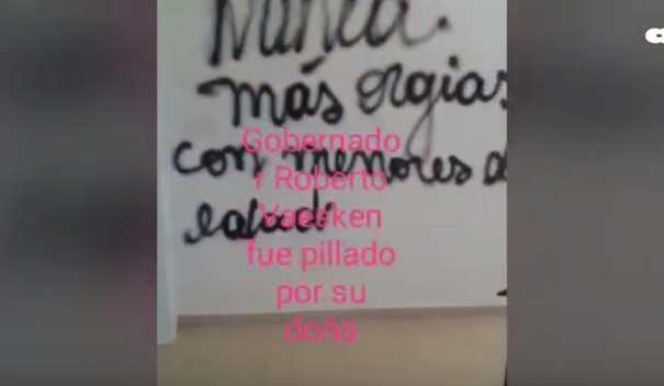 Según el reporte, la esposa de Roberto González Vaesken, Darsy Duarte González, pintó en una de las paredes de la casa la frase “nunca más orgía con menores de edad”.
