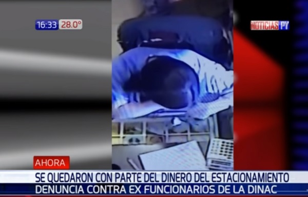 Imágenes del circuito cerrado captaron cuando dos exfuncionarias de la Dirección Nacional de Aeronáutica Civil (Dinac) se apropiaban del dinero correspondiente al estacionamiento tarifado.