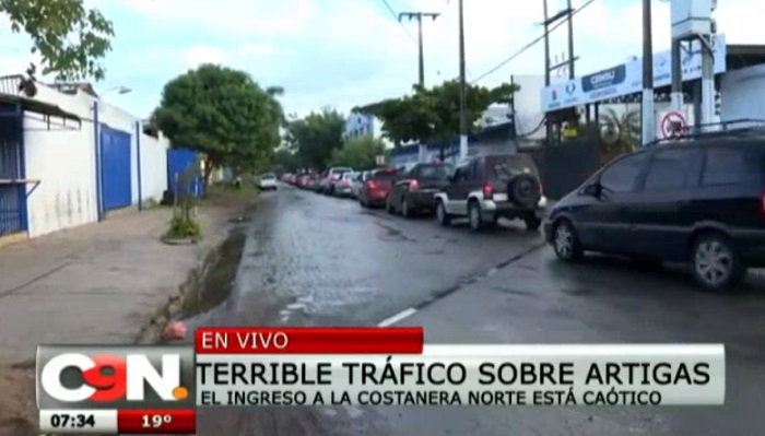 El tráfico lento y caótico se registra desde gran parte de la avda. Artigas, ruta de acceso a la Costanera Norte.