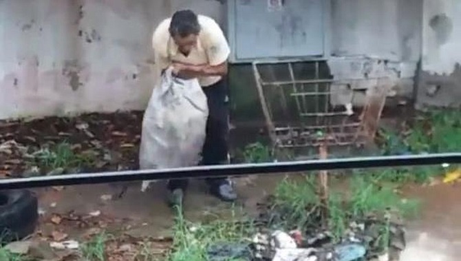 En las imágenes se observa al procesado arrojando residuos de todo tipo al caudal de agua originado a consecuencia del cambio climático frente a una vivienda ubicada sobre la calle San Rafael de la ciudad de Lambaré.