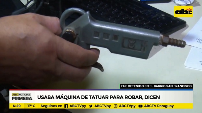 Al ser identificado, los agentes procedieron a su detención e incautaron de su poder varios objetos de valor y una máquina para hacer tatuajes, que utilizaba como arma de fuego para sus asaltos.