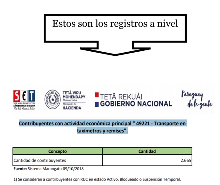 Del total mencionado anteriormente viceministro de la SET, Fabián Domínguez, reconoció a Hoy.com, que solo 774 están inscriptos como contribuyentes, quienes entre enero y noviembre del año pasado aportaron apenas G. 77,3 millones, es decir G. 99.870 cada taxista en 11 meses.