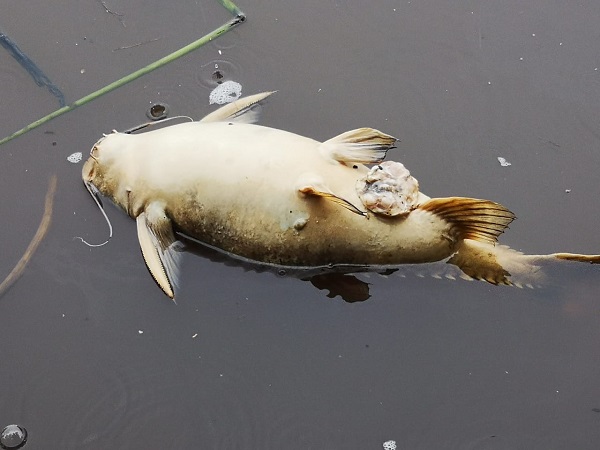 Numerosos peces de diversas especies flotan muertos en el agua, y en las costas se conglomeran cangrejos y peces pequeños. El fétido olor a pez muerto se percibe desde el ingreso a la zona portuaria.
