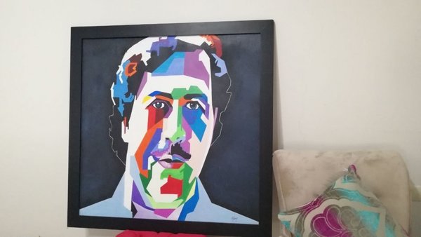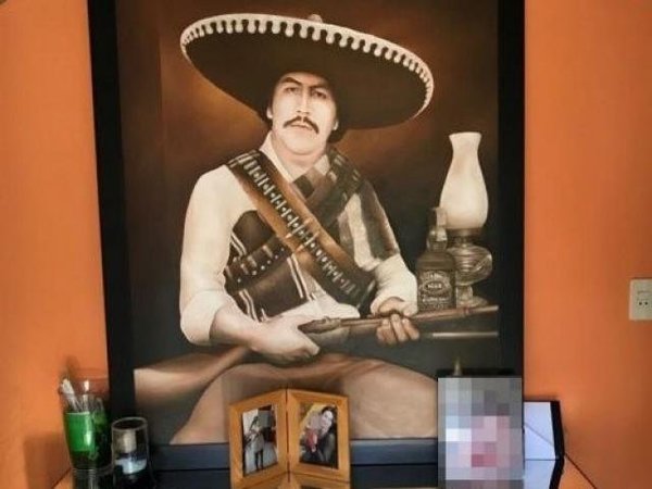 Además de joyas, armas y lujosos automóviles, los uniformados encontraron dos llamativas imágenes del famoso narco colombiano Pablo Escobar. Uno de los cuadros ocupaba una parte central la propiedad y estaba rodeado de fotos familiares.