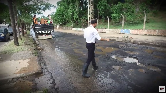 El equipo periodístico comprobó las profundidades de los pozos que abundan en la transirada vía de acceso a la zona del microcentro.