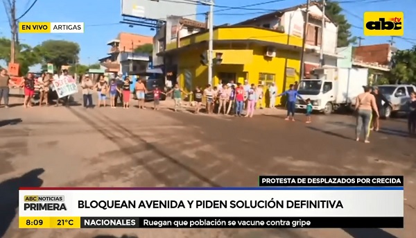 Pobladores del bañado Norte realizan una manifestación con cierre de la avenida Artigas.