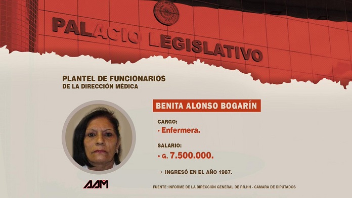 La enfermera Benita Alonso Bogarín percibe al mes G. 7,5 millones. Comenzó a trabajar en Diputados en 1987.