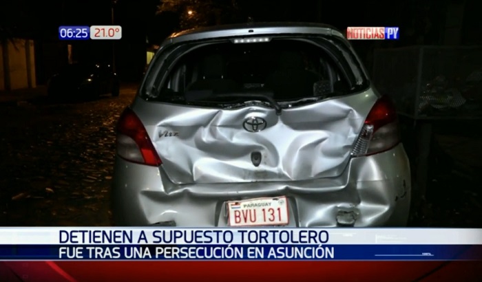El delincuente, identificado como Nelson Daniel Giménez, intentó huir a bordo de un Toyota Vitz, pero fue alcanzado por su víctima unos metros después, ya que lo chocó en la parte posterior de su vehículo y terminó impactando contra una columna.