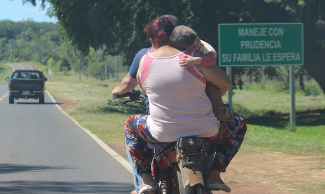 Desde el ente publicaron una fotografía con la imagen de una familia que viaja sobre una motocicleta sin la seguridad correspondiente.