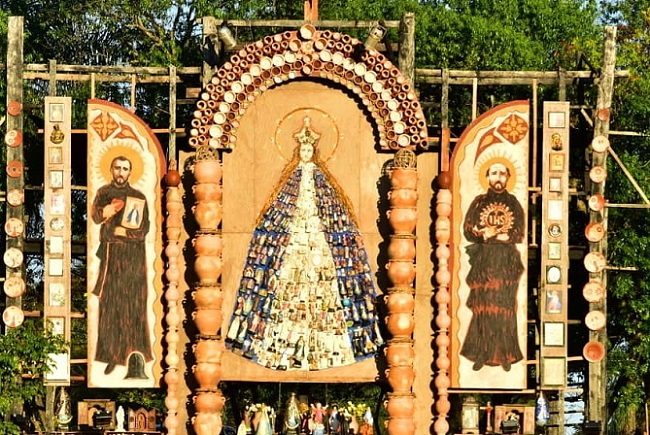 En el centro del retablo de Tañarandy, instalado en la Barraca, se encuentra la imagen de la Virgen de Caacupé.