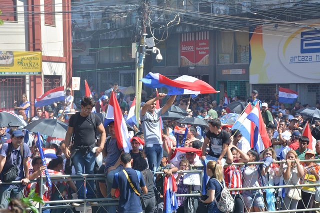 El legislador se encuentra en medio de la manifestación que él mismo convocó, para presionar de manera a que se apruebe su proyecto de desbloqueo de lista.