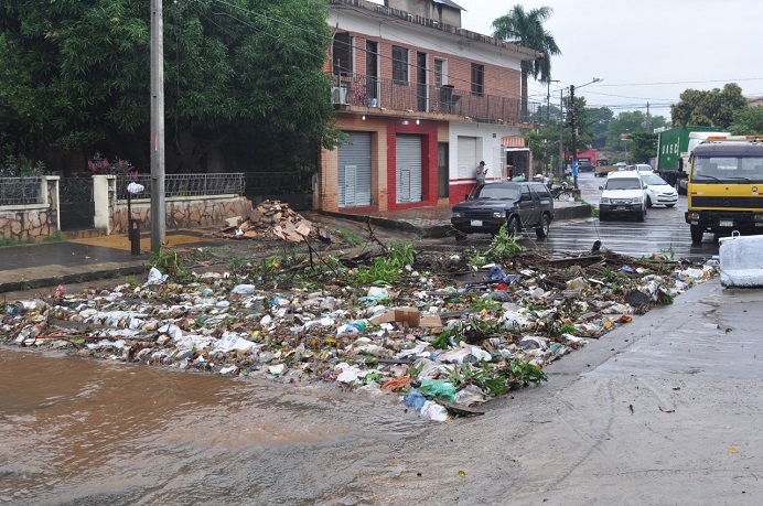 Este registro ubicado en la zona del Barrio San Pablo de la capital presenta este panorama ante cada lluvia. Este viernes 26 de abril, con las precipitaciones en horas de mañana ya se veían estas imágenes.