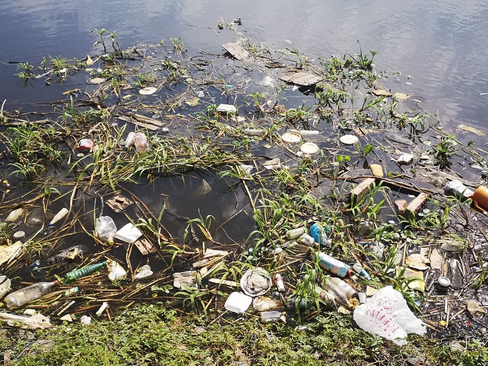La Costanera de Asunción, en el primer tramo construido, es un sitio sucio. El río está contaminado y en la zona de nuevo muelle deportivo así estaba el agua el 12 de abril pasado.