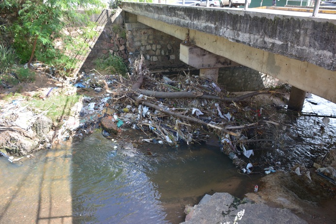 En la zona del barrio Bella Vista de Asunción este es el panorama del arroyo Mburicaó, totalmente contaminado y lleno de basura. La situación desoladora fue captada el 24 de abril.