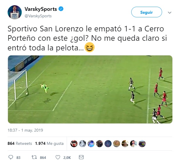 El sitio VarskySports, que se mueve principalmente en redes sociales, hasta se pregunta si fue gol y cierra con un emoticón.