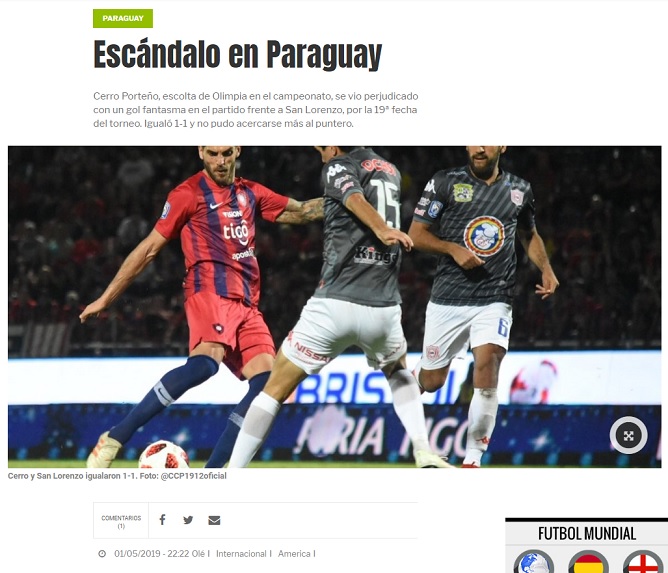 El diario deportivo OLÉ, uno de lo más importantes de Argentina y la región titular como escándalo, lo ocurrido este miércoles.