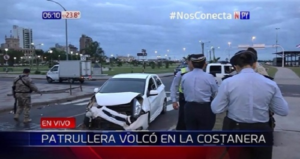 Según los primeros detalles la conductora del automóvil trataba de realizar un giro en U, para subir por la calle Río Ypané, cuando fue embestida por la patrullera.