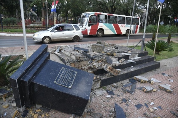 Se desconoce quienes destruyeron un monumento hecho en nombre de Bernardino Caballero, que se encuentra en una plaza sobre la avenida Ciudad del Este.
