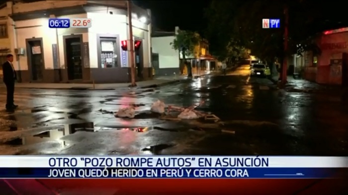 Según informó Noticias Paraguay, un motociclista cayó en un profundo bache, ubicado sobre la calle Cerro Corá casi avenida Perú.
