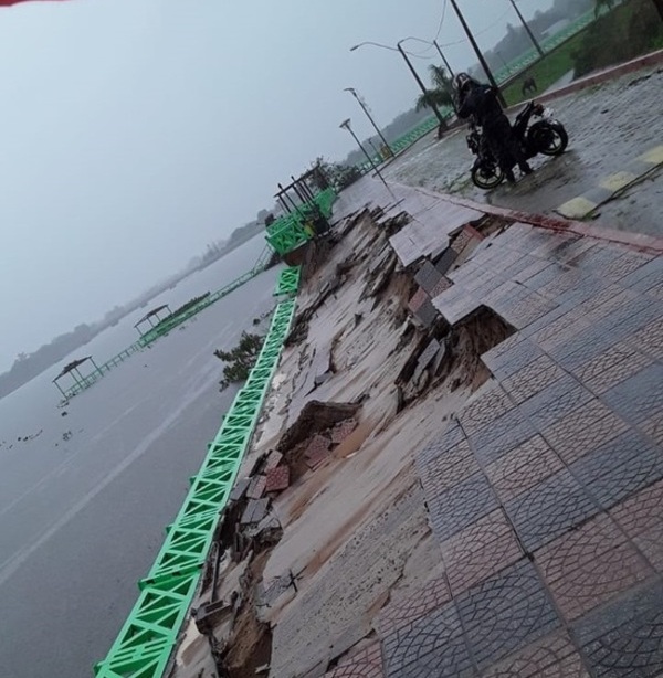 Además del intenso caos que se generó en varios barrios de la zona, las aguas caídas desplomaron parte de la Costanera y amenazan con rebasar el muro de contención que brinda protección a la ciudad de la crecida del río Paraguay.