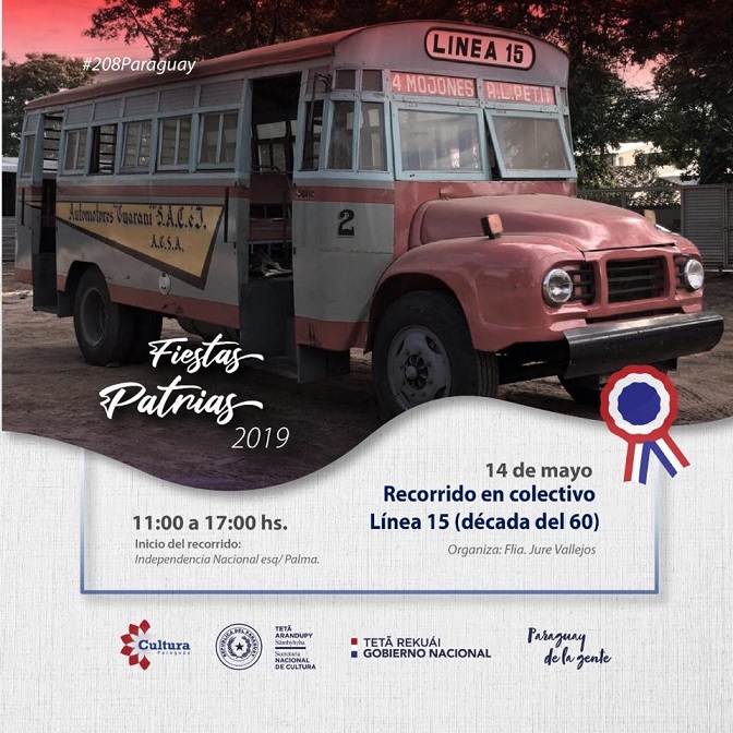 Este martes 14 se mayo, de 11:00 a 17:00 se realizará un rcorrido por el Centro Histórico de Asunción en colectivo antiguo de la Línea 15 (Década de los 60)