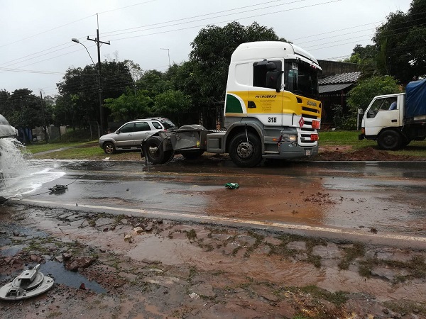 El camión cisterna volcó a la altura del kilómetro 27 de la ruta General Marcial Samaniego, a aproximadamente 100 metros del acceso del Hospital Nacional de Itaugua. No hubo personas lesionadas como consecuencia del accidente.