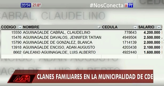 La concejala Lilian González de Aguinagalde, esposa del exgobernador y exsenador Nelson Aguinagalde, también tiene un “mini clan” dentro de la Municipalidad de Ciudad del Este, como se puede ver en la imagen.