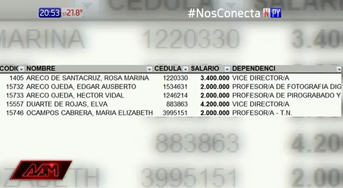 En la Escuela de Artes y Oficios, la vicedirectora Rosa María Areco de Santacruz tiene al menos a dos hijos contratados, además de otros parientes. Los detalles en la imagen de arriba.