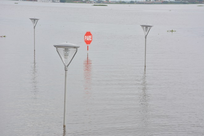 Señalizaciones y hasta los faros de la costanera se encuentran en el río, prácticamente, ahora con la crecida.