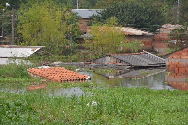 En la zona de la costanera norte, la crecida se encuentra cerca del techo de las precarias viviendas.