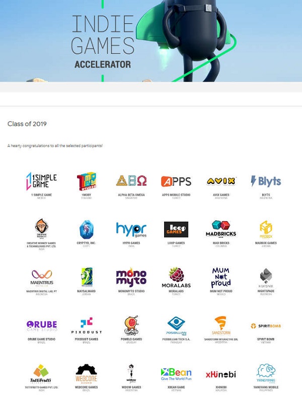Google, deseando apoyar a proyectos que considera muy promisorios, estableció la aceleradora para brindar apoyo a juegos y estudios de países emergentes, y ayudarlos a llegar al siguiente nivel.