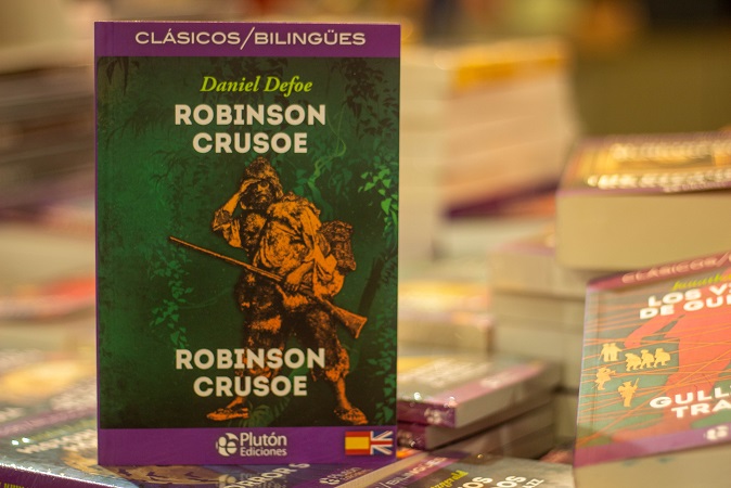 Robinson Crusoe, de la editorial Atlas, tiene un costo de G. 16.000 como también puede ser incluido en la promo de 3 libros por G. 50.000. Es uno de los clásicos que tiene su presentación bilingüe.
