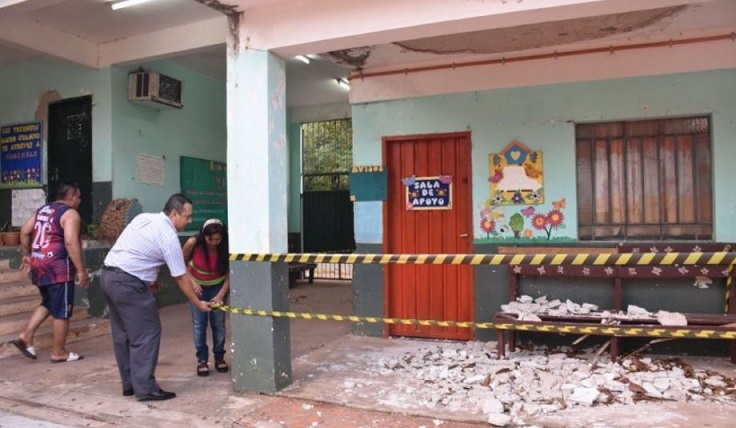 El techo se desmoronó sobre un banco en el pasillo. Foto: Gentileza.