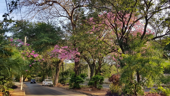 En la zona trasera del predio del Hospital Central del IPS hay una avenida con un paseo central, en el mismo resalta un lapacho con frondosos gajos llenos de flores.