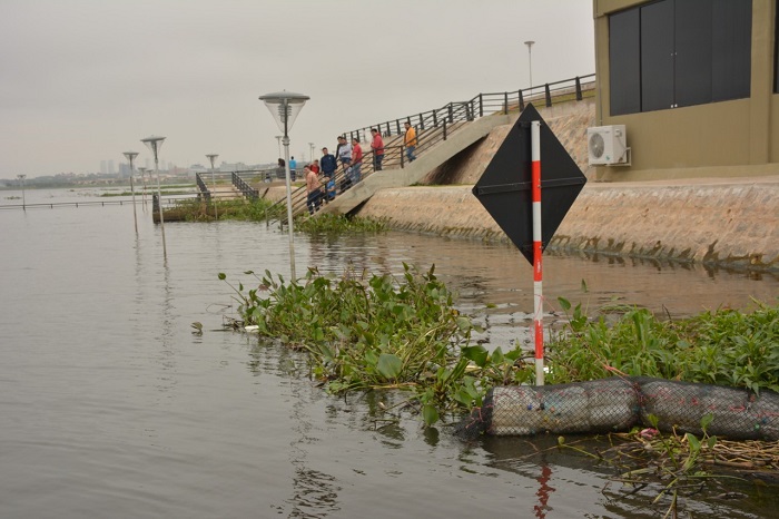 En la zona portuaria de la Dirección Nacional de Aduanas (DNA), el muelle, donde desembarcan las barcazas, que vienen del Mbiguá, está totalmente bajo agua.