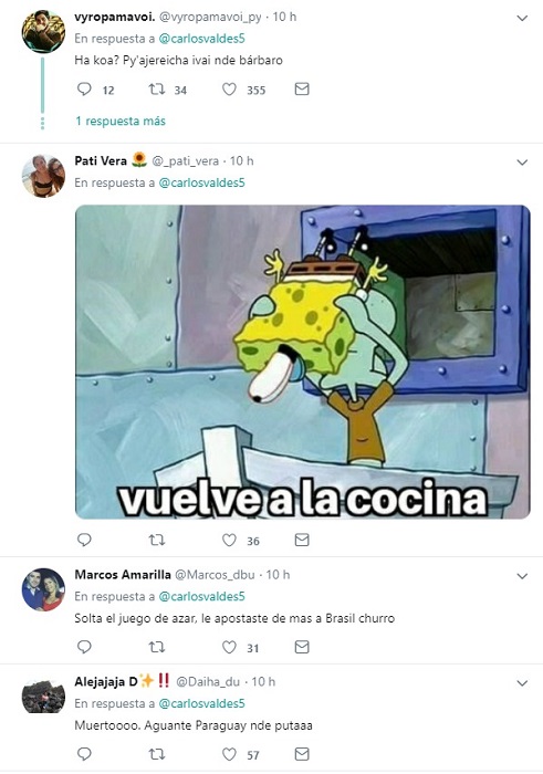 “Se demoro (sic) la eliminación de Paraguay. unos dicen con las botas puestas, yo diría con el anti-fútbol y clasificando con 2 puntos el fútbol no te puede premiar”, fue lo que redactó.