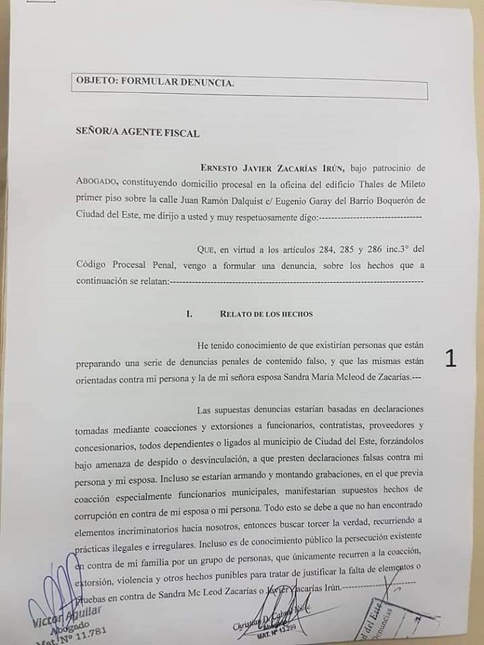 La denuncia fue presentada, este viernes, ante la Ministerio Público en Ciudad del Este.