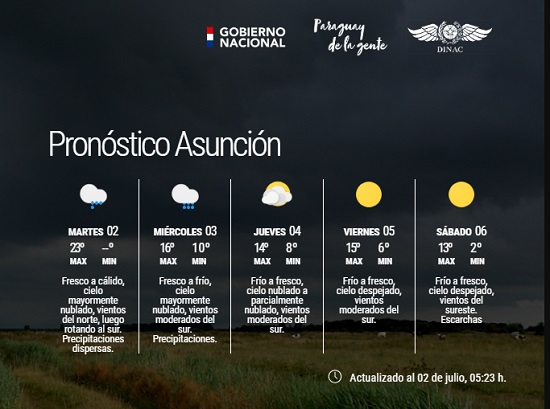 Así también remarca que en casi toda la región Oriental llegaría con intensidad.