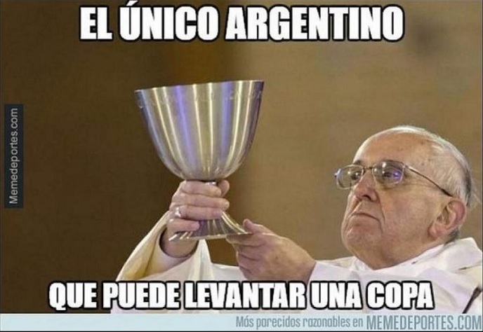 Deportes 14 memes que no se apiadan de Argentina 3 julio, 2019, 10:41 - Por Redacción RDN 2. La copa El papa Francisco también es partícipe de las humoradas en redes sociales. 3 /15 « Anterior Siguiente » Para ver el contenido haz click en "Permitir" (o "Allow" en inglés) Recibí las noticias más importantes en tiempo real. 100% GRATIS Haz bloqueado nuestras notificaciones. Para disfrutar del contenido de RDN, por favor habilita las notificaciones, en las opciones de tu navegador. Aceptar Ingresando...