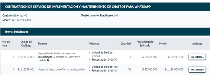 La suma de la nueva licitación sería de G. 1.247.243.400 que incluye el desarrollo de software y mantenimiento mensual, con un contrato de tres años.