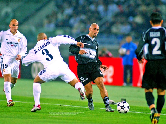 El volante Sergio Orteman da un pase ante la marca de Roberto Carlos.