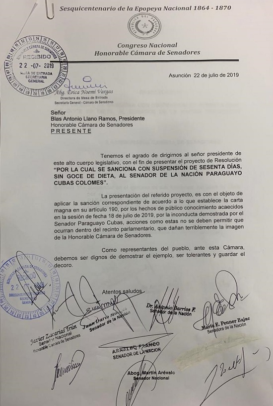 En los documentos se solicitan la suspensión de ambos parlamentarios por 60 días y sin goce de sueldo.